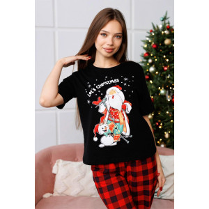 Пижама женская 3032 "Дед Мороз" трикотаж (последний размер) брюки красные 42,48