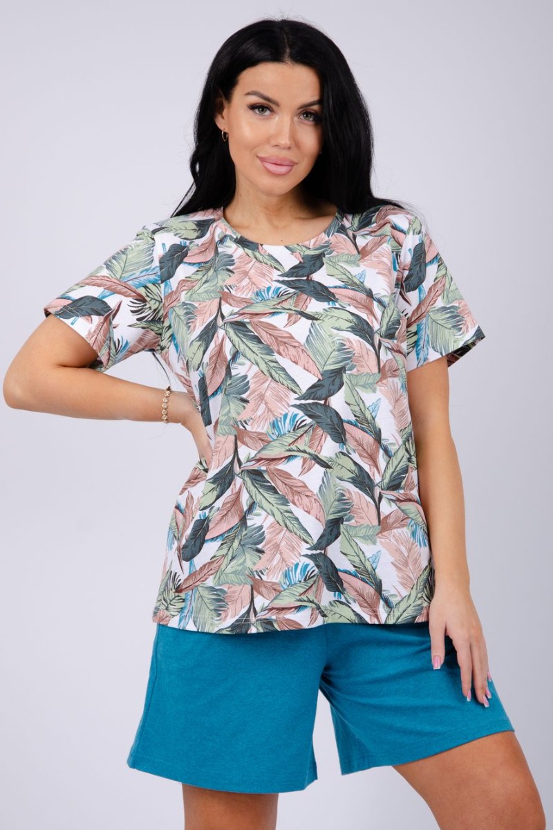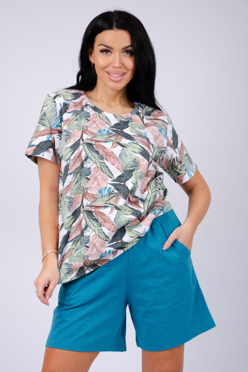 Представляем Вашему вниманию легкий женский костюм двойку из кулирки - 100% натурального, дышащего хлопка. Комплект имеет интересную расцветку, которая красиво смотрится и поднимает настроение. Костюм хорошо сидит на фигуре и подчеркивает её достоинства. В нём Вы будете чувствовать себя комфортно и уверенно.