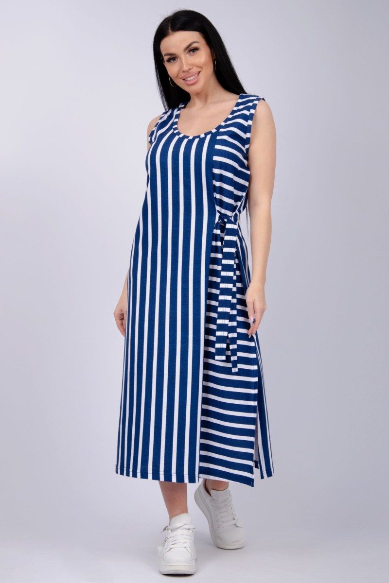 Туника женская "Бали" кулирка (последний размер) синяя полоса 52