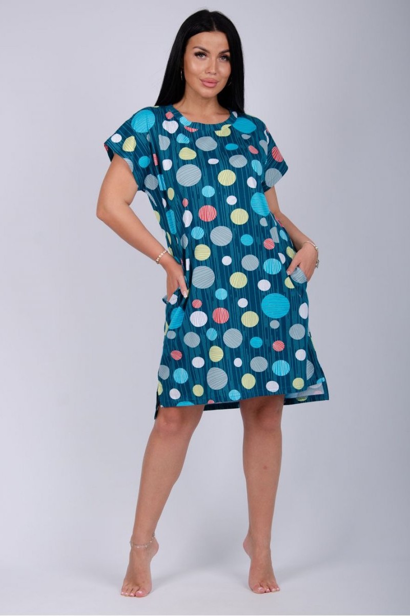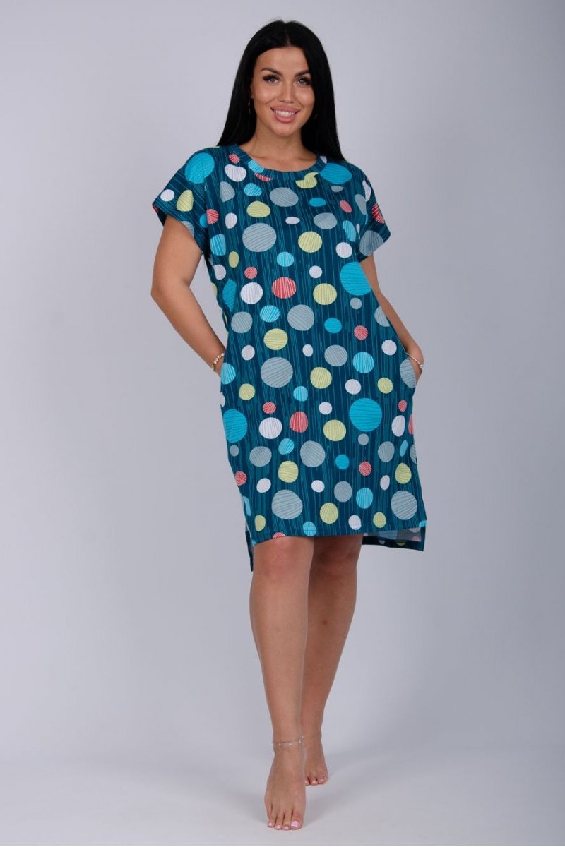 Туника женская "Блеск" кулирка (последний размер) круги голубой 56