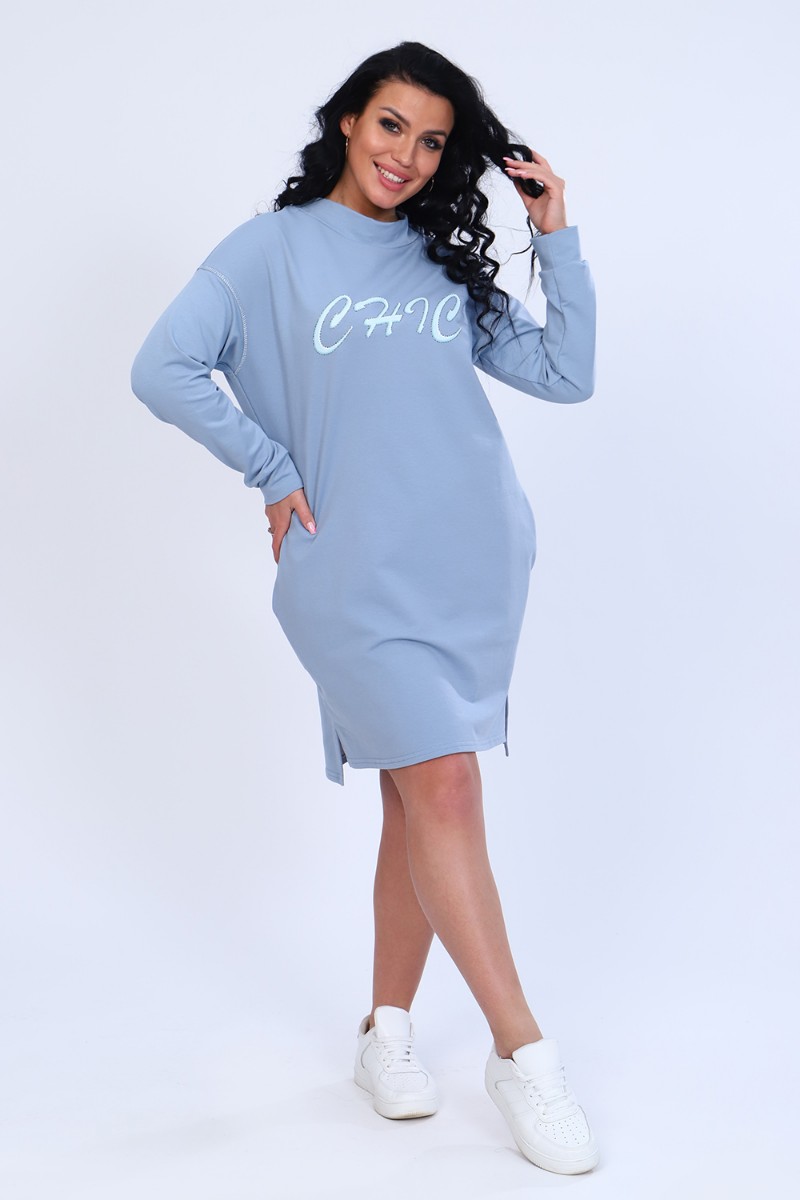 Платье женское №82015 футер с лайкрой 2-х нитка (последний размер) серо-голубой 52