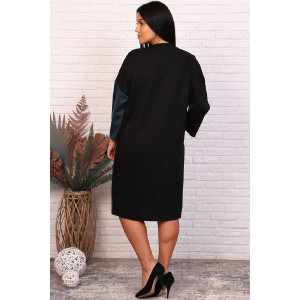 Представляем Вашему вниманию платье прямое свободного кроя. Округлая горловина. Плечо спущенное, рукав 3/4. Передняя полочка разделена декоративной молнией, накладной карман. Длина средней длины.