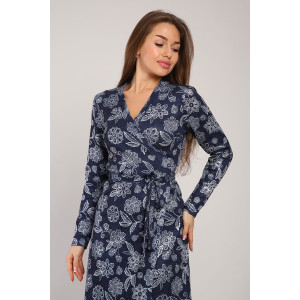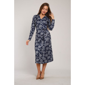 Платье женское Ф1073 плательная ткань (р-ры: 42-54) темно-синий листья