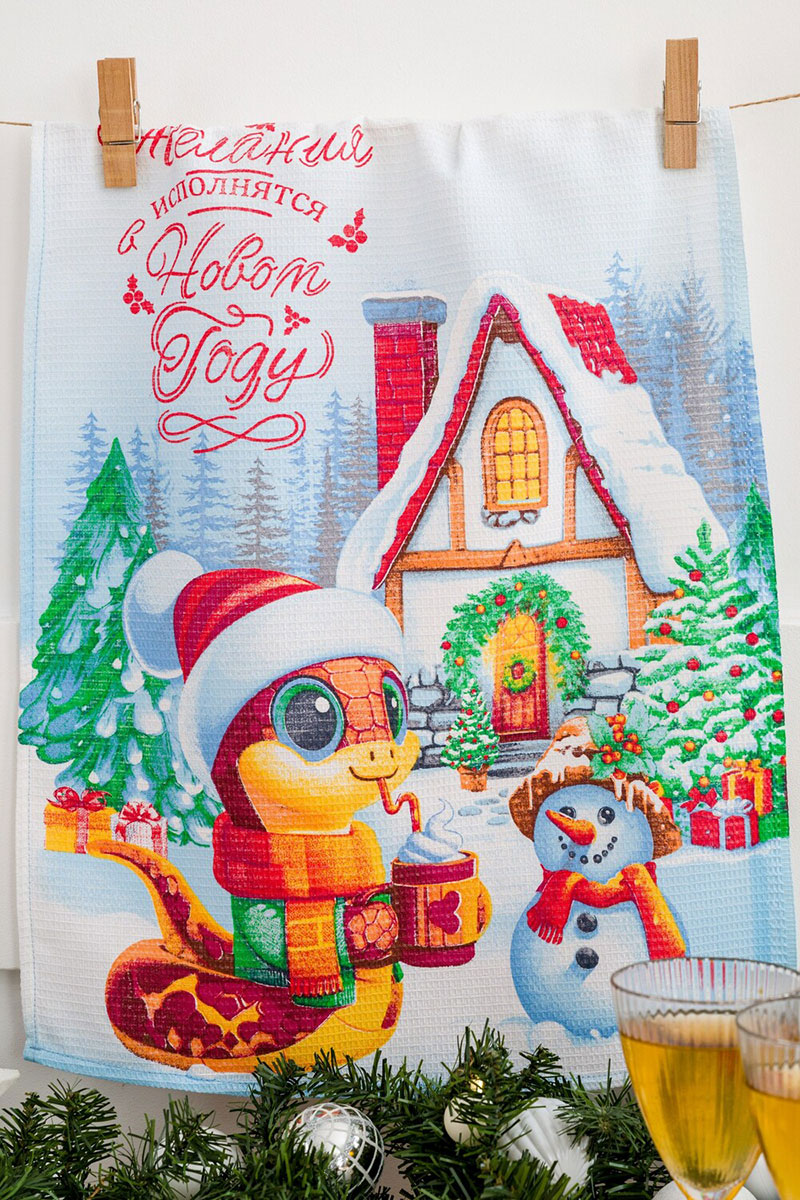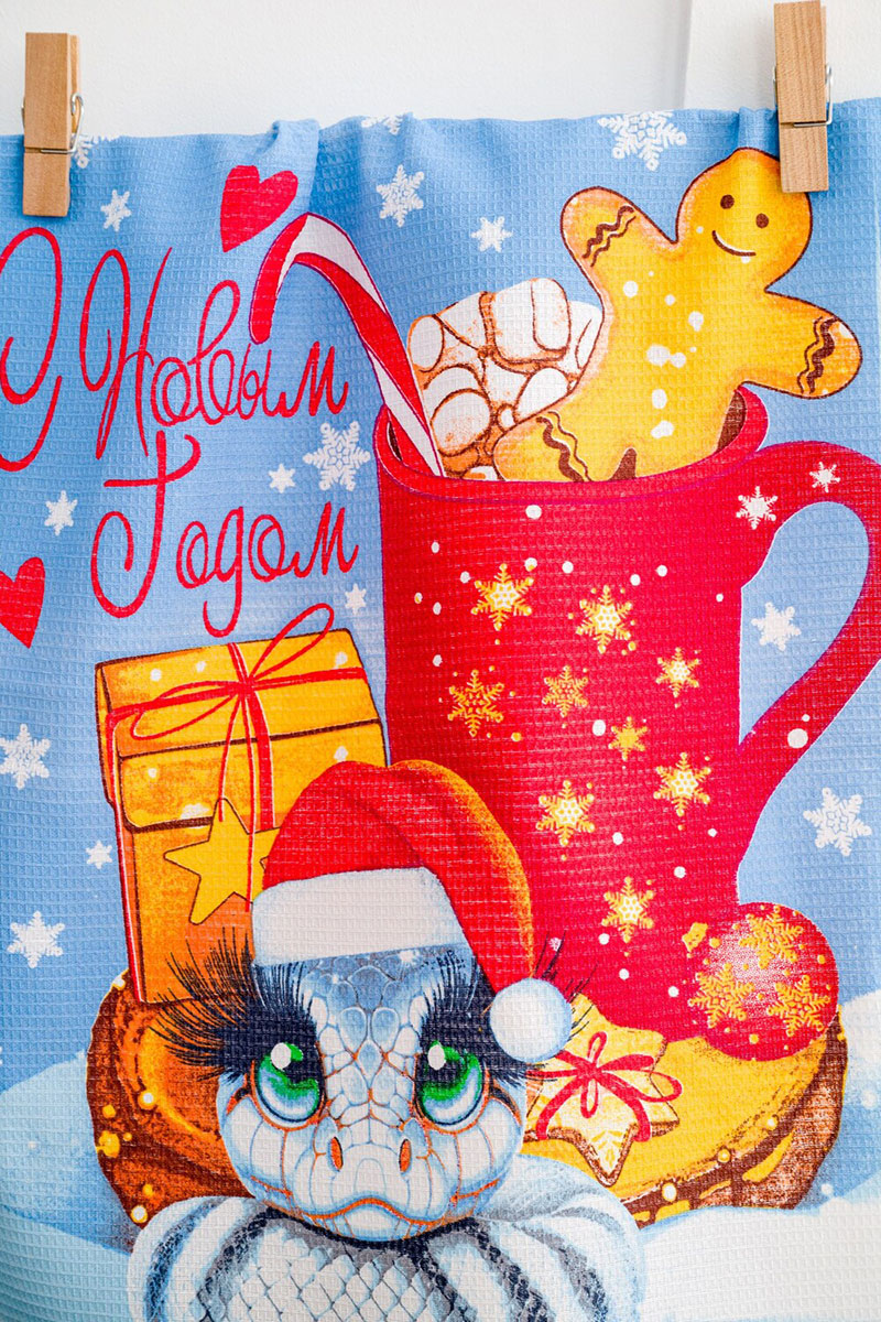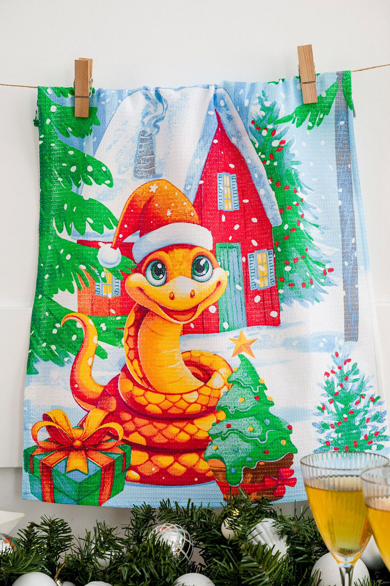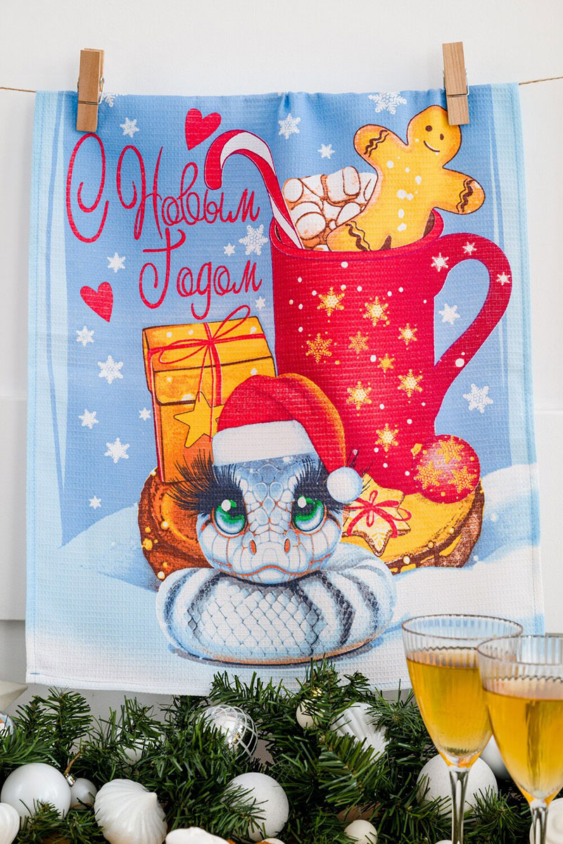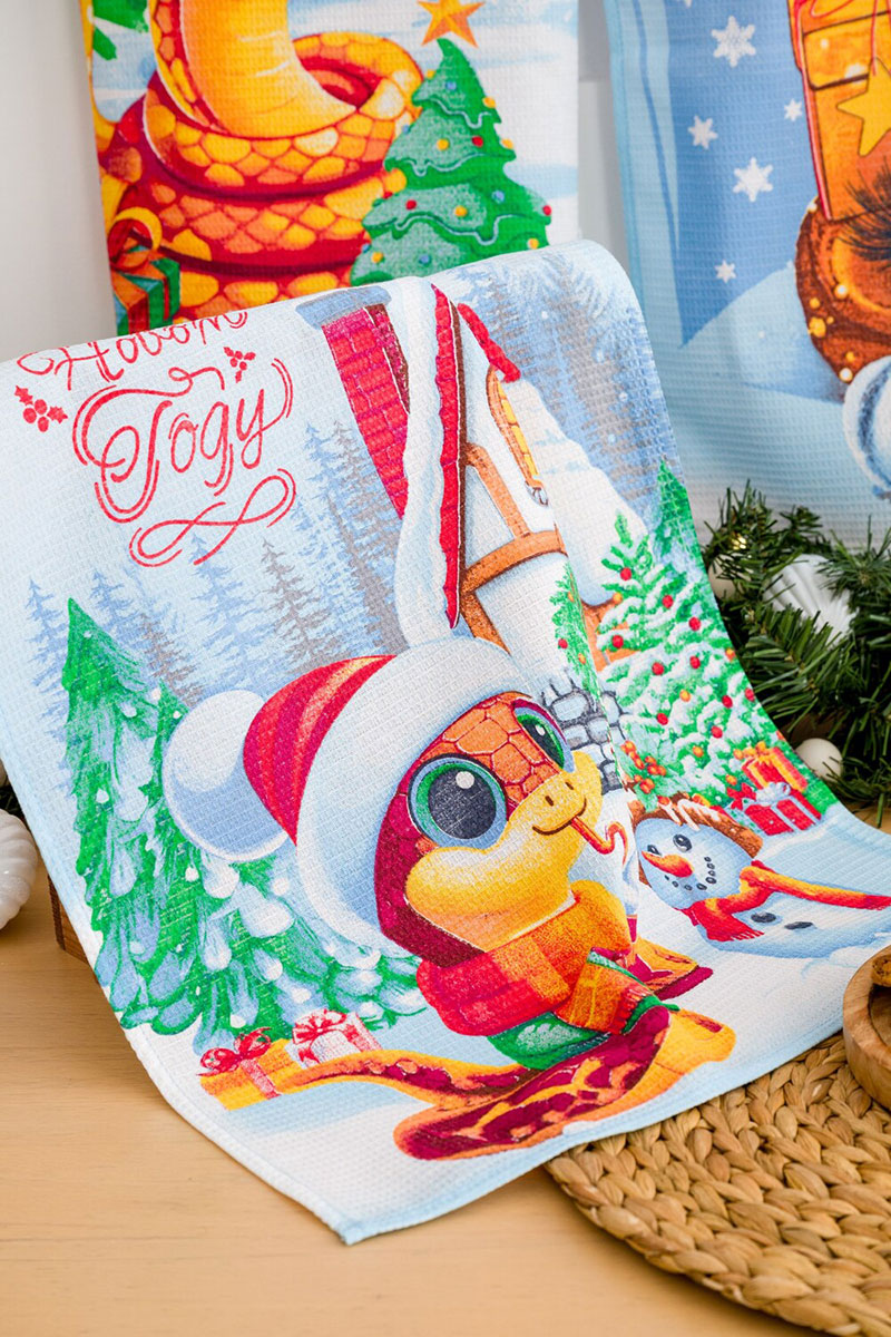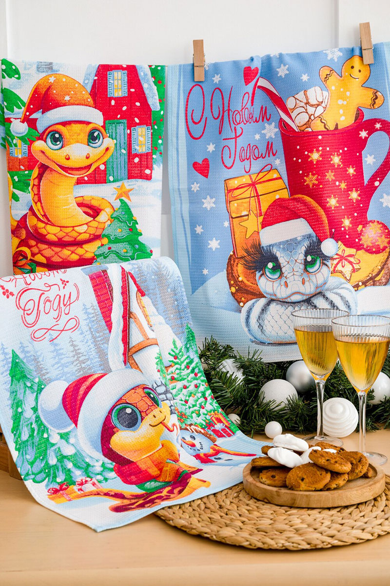 Набор кухонный из 3-х полотенец рогожка "Зимние змейки символ года" (последний размер) 60х48 см (3 шт.)