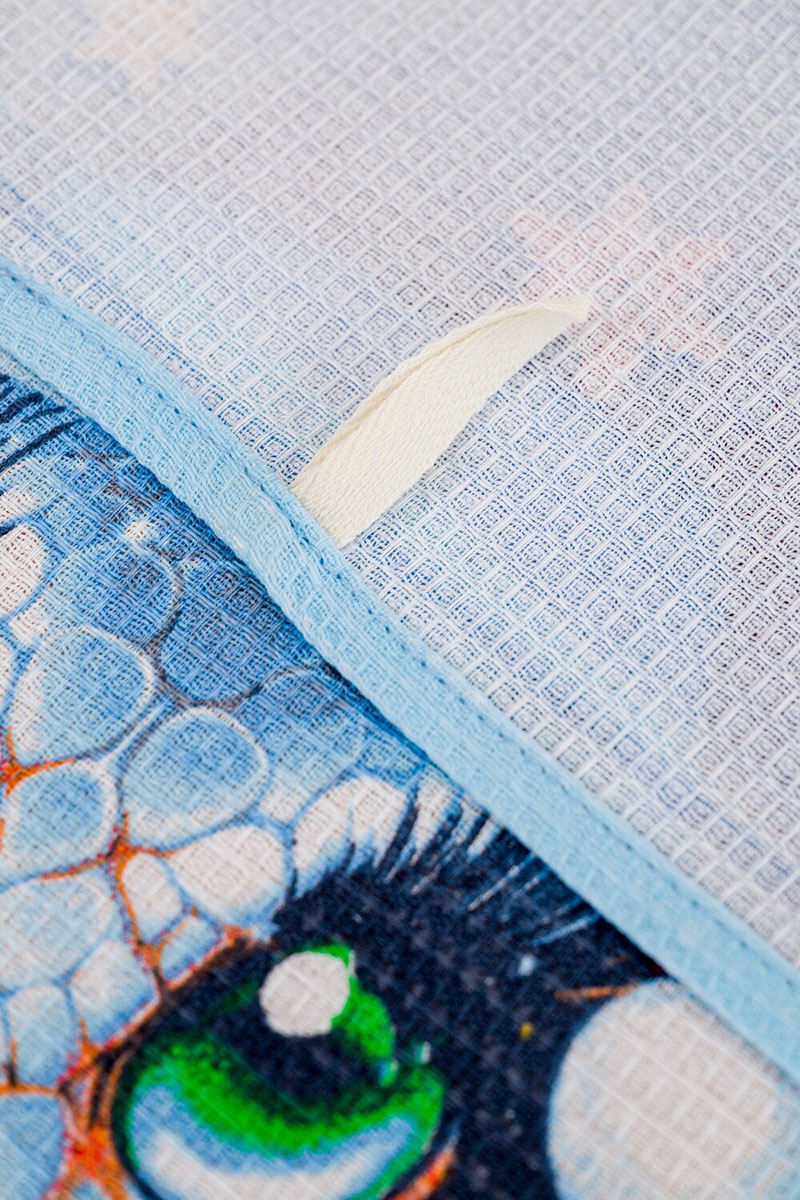 В наборе три полотенца размером 48*60, к каждому полотенцу пришита петелька для удобства использования.