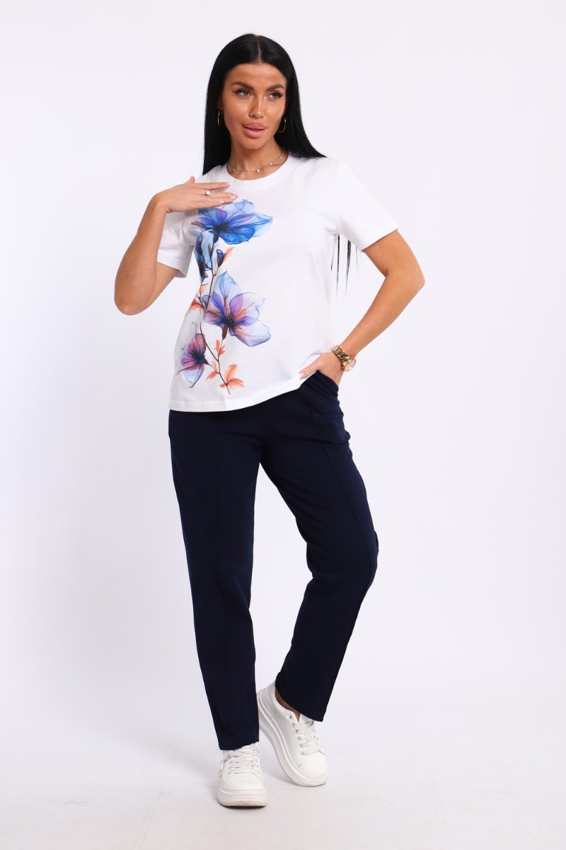 Представляем Вашему вниманию современный костюм, состоящий из брюк и футболки. Брюки классические с отстроченной стрелкой спереди, двумя карманами, пояс на резинке. Футболка свободного кроя, с принтом. Костюм обладает отменными практическими характеристиками, и на долгое время сохранит свой первоначальный вид.