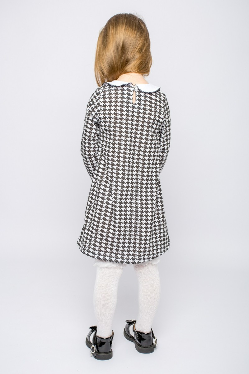 Представляем Вашему вниманию легкое детское платье из кулирки. А-силуэт, отложной воротник, длинные втачные рукава, на спинке застежка на пуговку.