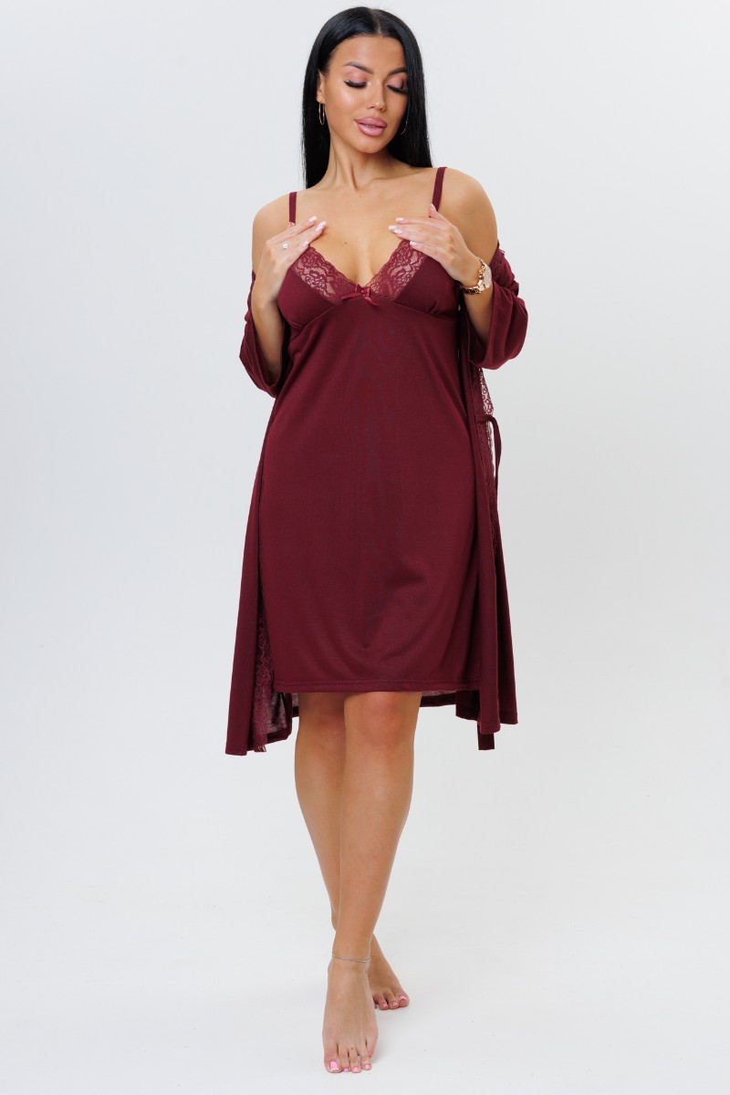 Пеньюар двойка женский №2103 вискоза (р-ры: 46-56) бордовый