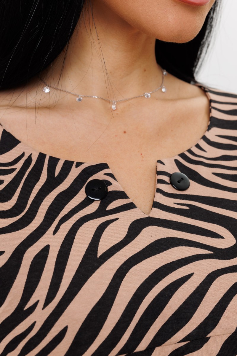 Представляем Вашему вниманию тунику больших размеров кофейного цвета с анималистичным принтом. Яркая и стильная, с красивой фигурной горловиной. Изящная линия плеча. Глубокие вместительные карманы. Универсальная длина рукава, которая подойдет на любую погоду. Для женщин с фигурой plus size, такой фасон одежды – Для женщин с фигурой plus size – это отличный вариант как для повседневного гардероба, так и по случаю праздника. Хорошо сочетается с брюками, бермудами, джинсами; с обувью на каблуке или плоской подошве.