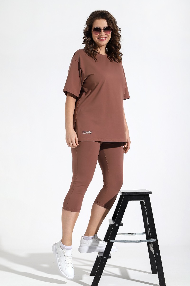 Костюм двойка женский "Стильная леди" кулирка с лайкрой (р-ры: 48-58) коричневый