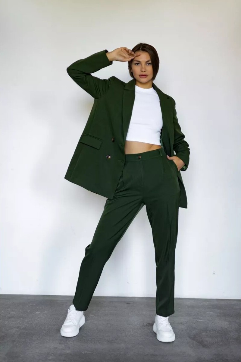 Представляем Вашему вниманию женский деловой брючный костюм - это идеальный выбор для Вашего гардероба. Классический костюм, выполненный из легких и приятных к телу материалов, обеспечит комфорт и будет отлично смотреться на любой женщине. Костюм представлен в разных размерах, включая большие, чтобы каждая женщина могла выбрать подходящую для себя двойку. Брючные штаны станут отличным вариантом как для офисного, так и для праздничного наряда. Классический дизайн костюма делает его универсальным и подходящим для различных мероприятий - от вечернего выхода до деловой встречи, а так же как школьная форма для подростка. Наличие подклада у пиджака порадует вас и в теплое и в холодное время. Будь то зима, весна, осень или лето. Не упустите возможность приобрести женский деловой брючный костюм с большим выбором размеров и ощутить комфорт в носке качественной и стильной одежды! Классическая ОВЕРСАЙЗ одежда на каждый день. Широкий размерный ряд от 40 до 56, подробнее на 3м фото в карусели. Посадка правильной длины и кроя с мягким подкладом и подплечниками. Классика и отличный элегантный подарок на день рождения маме, жене, девушке, сестре. Отлично дополнит весенний или осенний наряд. Подойдет на любое мероприятие, на 8 марта, последний звонок или выпускной, 1е сентября или свадебная церемония. Много образов, офисный деловой и повседневный кэжуал стиль на прогулку, на работу, для подростков в школу. Модный клубный лук на вечеринку, на праздник, на особый случай и для подружек невесты на свадьбу. Комфортный плюс сайз жакет и прямые штаны порадуют вас и в теплое и в холодное время, будь то зима, весна, осень. Такой повседневный молодежный oversize фасон отлично подойдет на прогулочный вечер, корпоратив. Строгий костюм двойка это комплект с пиджаком с воротником и с брюками, модная и удобная одежда для женщин.