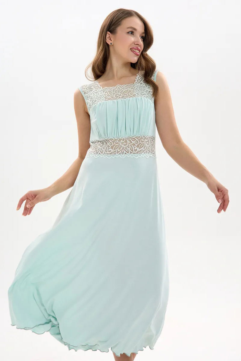 Сорочка женская длинная "Риана" вискоза с кружевом (р-ры: 42-60) ментол