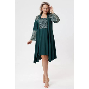 Пеньюар двойка женский "Мадонна" вискоза с кружевом (р-ры: 42-60) зеленый