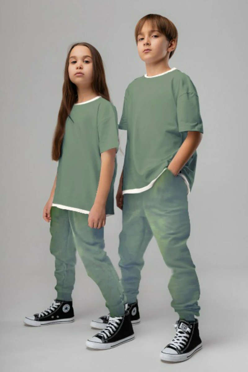 Костюм двойка детский "Домино-3" футер петля (последний размер) оливковый 164