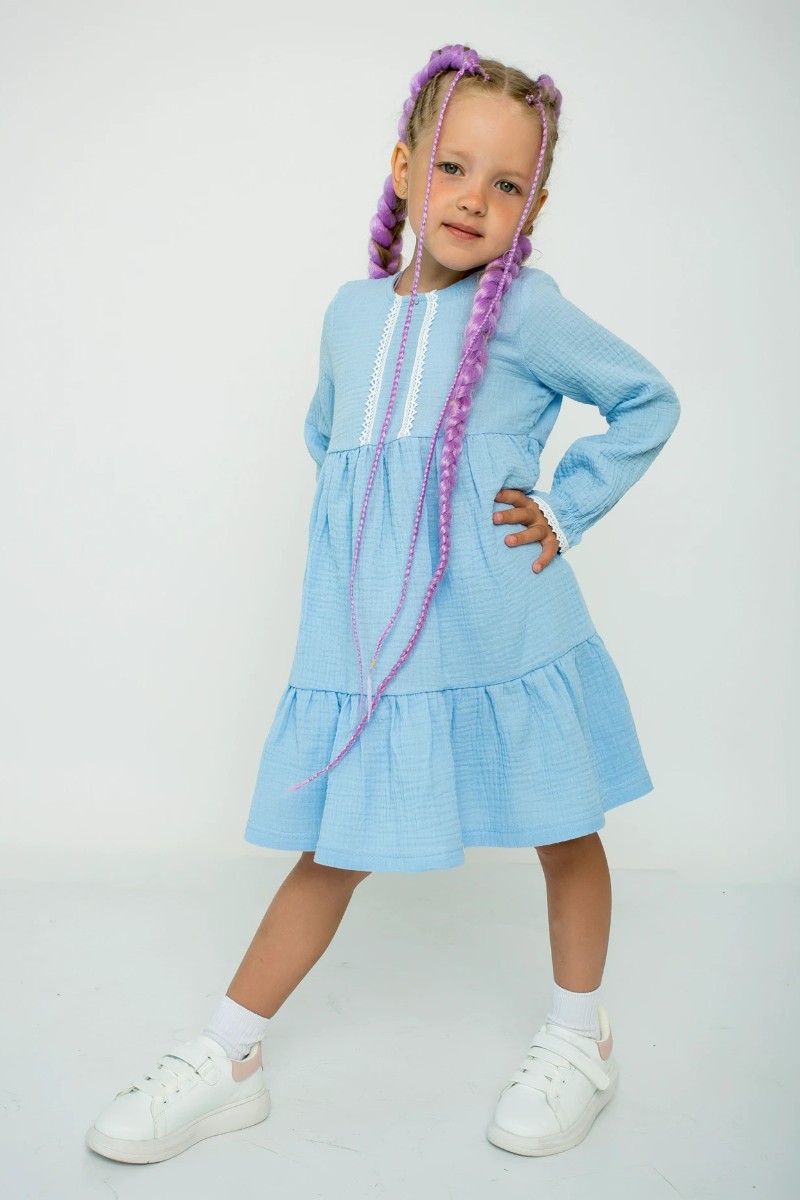 Платье детское "Стефания-1" муслин (последний размер) голубой 110