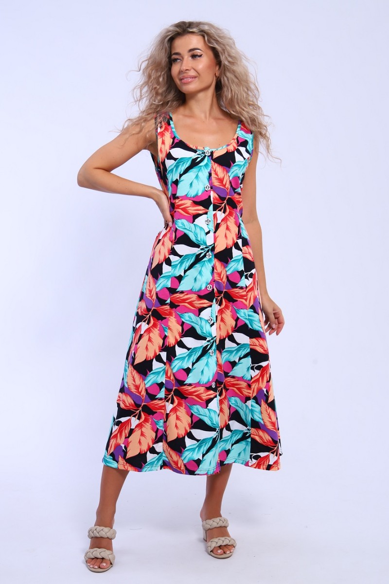 Представляем Вашему вниманию легкий женский сарафан на пуговицах. Изготовлен из легкой, дышащей, приятной к телу кулирки. Изделие хорошо сидит на фигуре. В нём Вы будете чувствовать себя комфортно и уверенно.