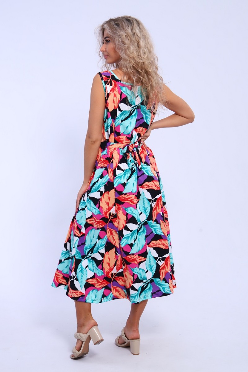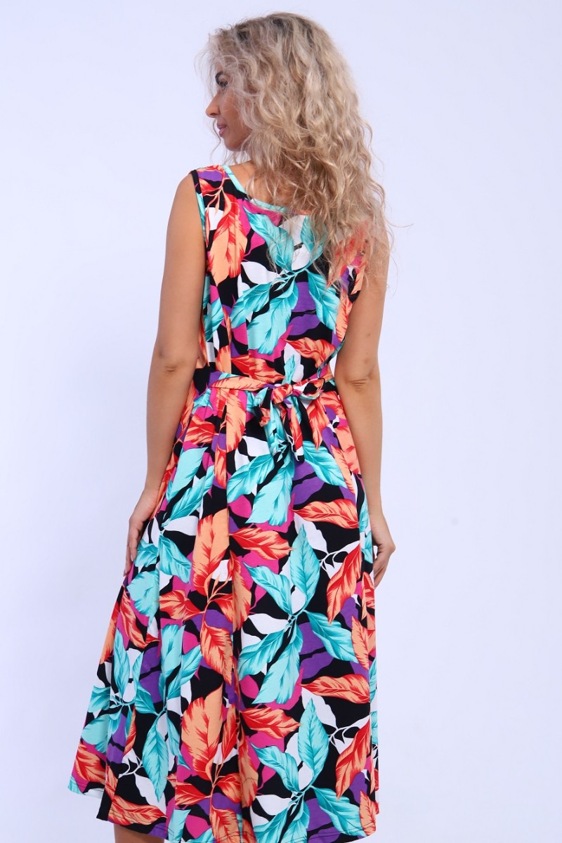 Сарафан женский 576 кулирка (последний размер) черный-розовый-листья 48-50,54-56