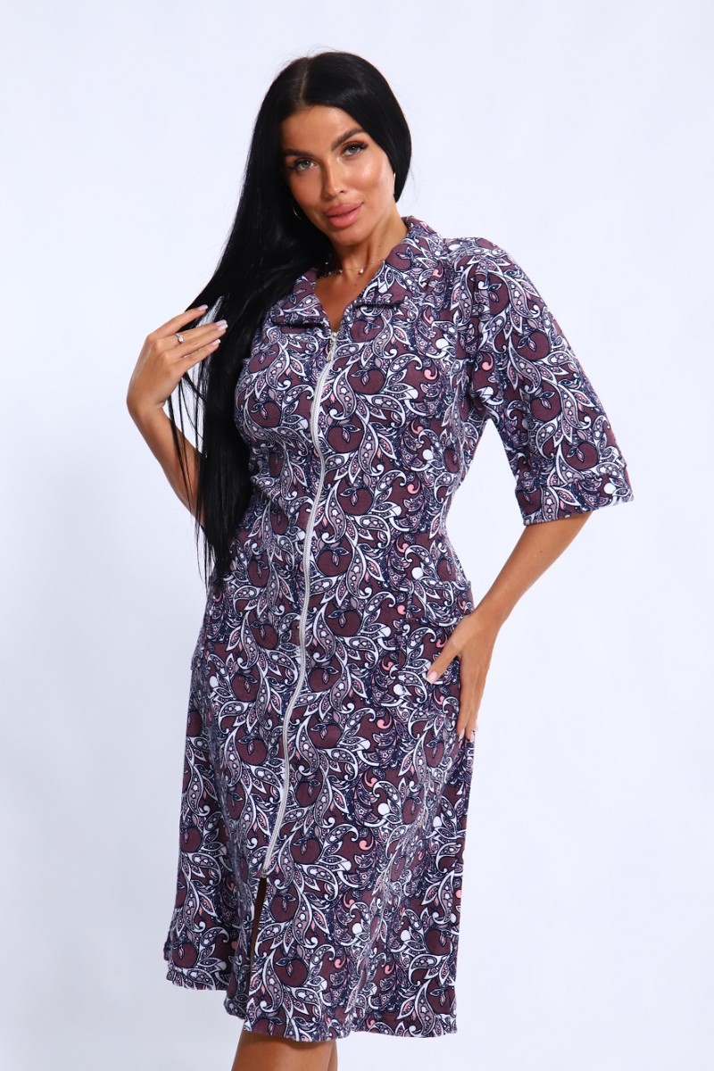 Халат женский 320 махра (последний размер) баклажан-белый-огурцы 56-58