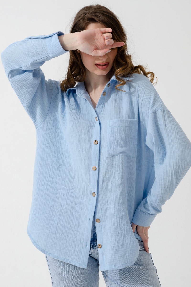 Рубашка женская "Муслин" 2315-Мус муслин (р-ры: 44-54) голубой