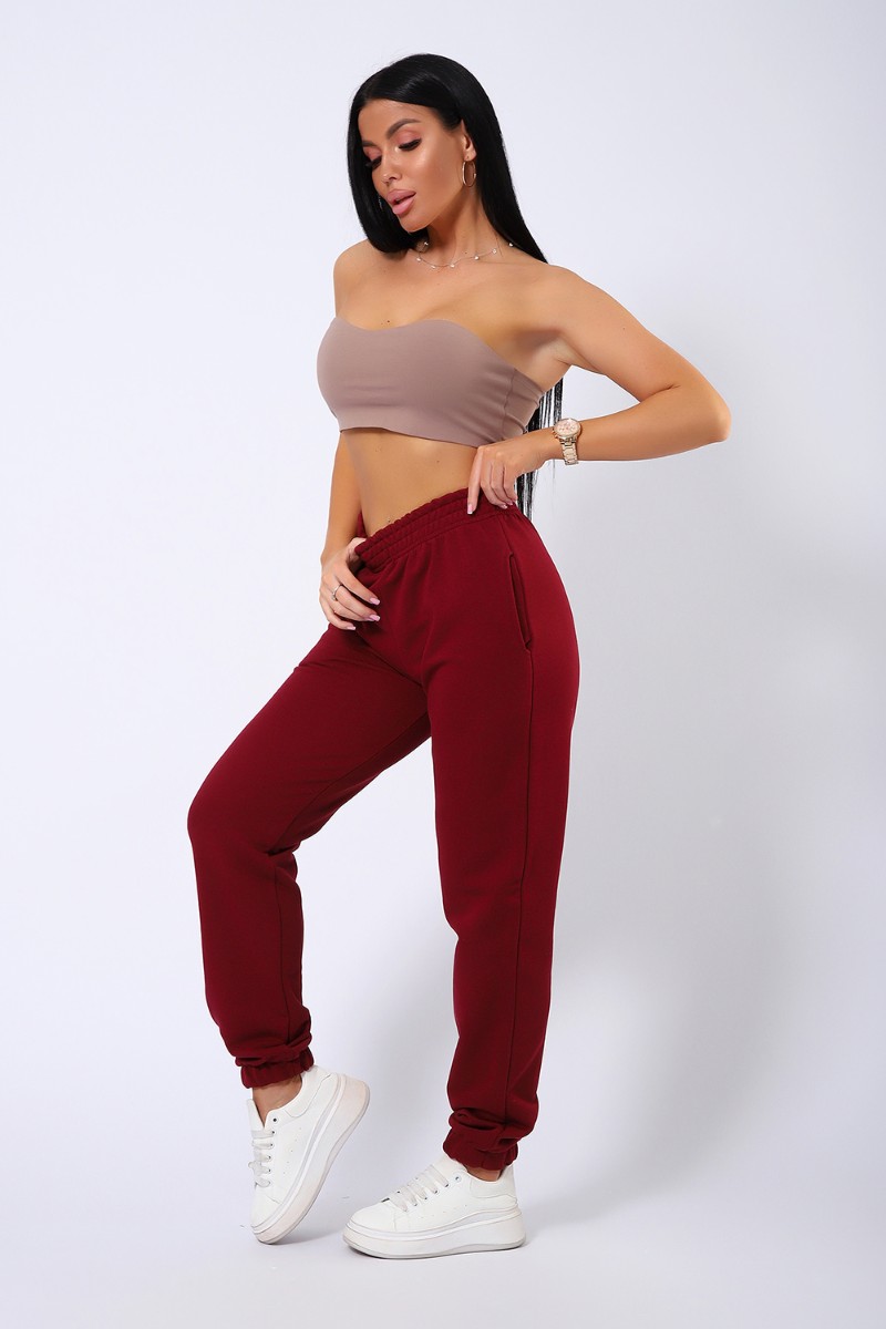 Брюки женские КБФ-1071 футер 3-х нитка (р-ры: 42-52) бордовый