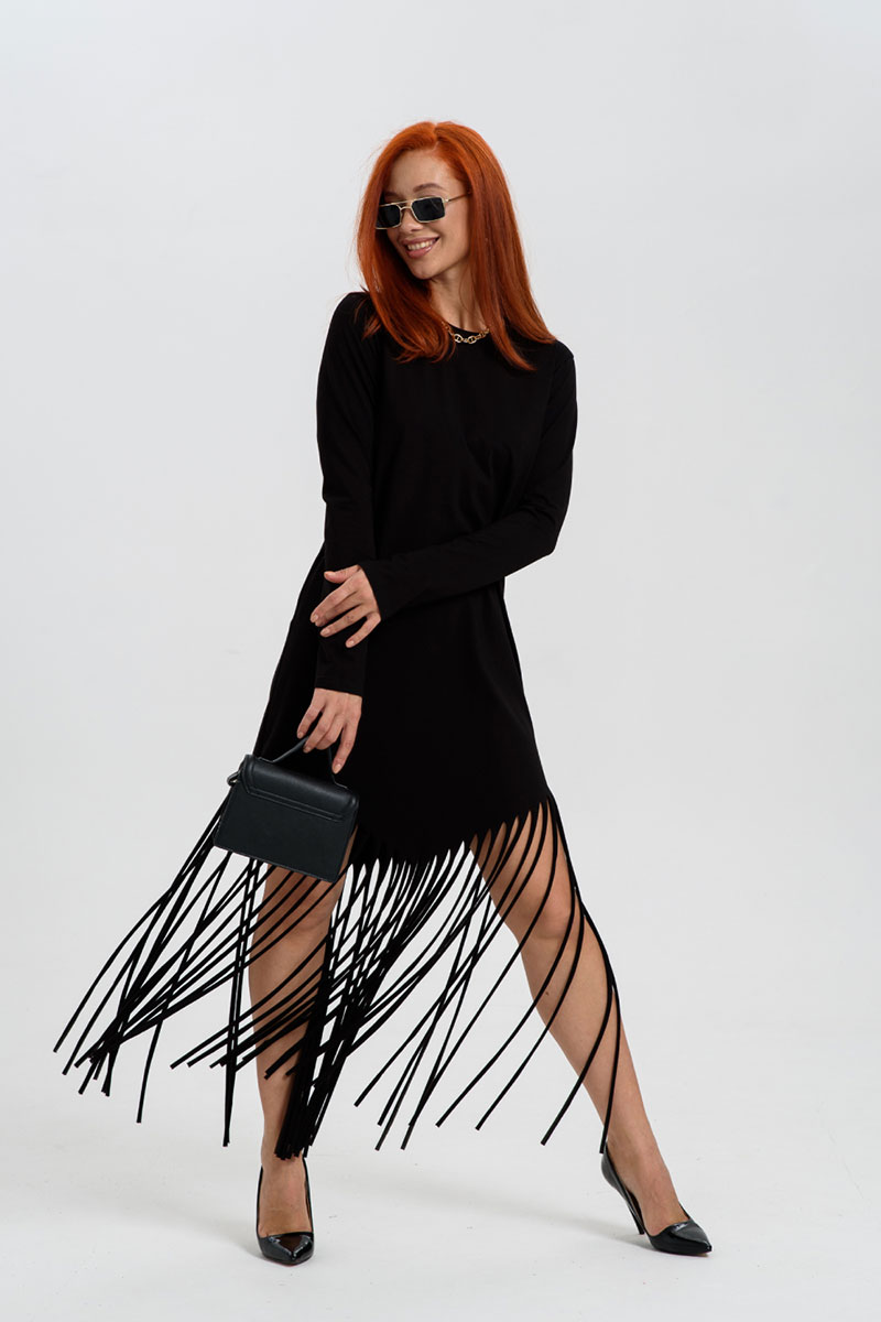 Представляем Вашему вниманию женское платье ассиметричного кроя с бахромой по низу. Одним из самых любимых предметов летнего гардероба является лёгкое трикотажное платье. Его воздушная ткань и свободный крой обеспечивают невероятный комфорт и свободу движений, что особенно ценно во время летнего отдыха. Платье с бахромой станет отличным выбором для пляжного досуга.