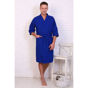 Представляем Вашему вниманию мужской вафельный халат-кимоно. Рукав 3/4. Карманы накладные. Воротник планка. Размерный ряд от 44/46 до 64/66. Плотность вафельного полотна - 242 гр.