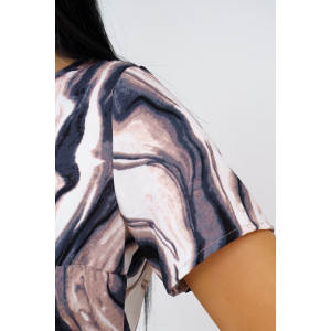 Представляем Вашему вниманию модель женского платья с коротким рукавом отличается оригинальным принтом, стильной горловиной лодочка и вырезом выше колена. В вечернем платье прорезные карманы. По окружности талии платье собрано на эластичную ленту, что добавляет фигуре изысканности и женственности.