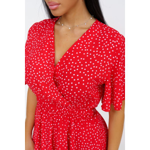 Представляем Вашему вниманию стильное платье из штапеля выше колена. Треугольный вырез с запахом и короткий рукав-бабочка добавляют легкости и непринужденности образу. Талия подчеркнута резинкой.