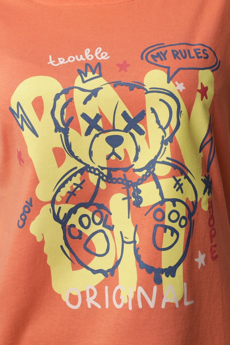 Ткань: футболка - кулирка (100% хлопок), брюки - футер с лайкрой набивной (80% хлопок, 15% п/э, 5% лайкра)
