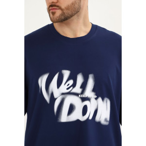 Представляем Вашему вниманию футболку мужскую оверсайз из трикотажного полотна: хлопкового с добавлением лайкры. Модель с принтом на переде, спущенной линией плеч, рукавами длиной до локтя.