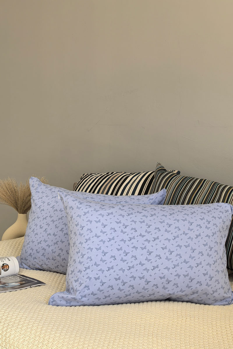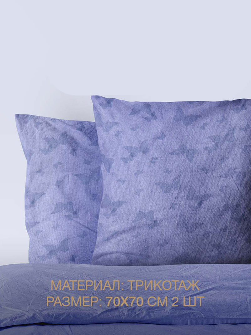 Наволочка трикотажная на молнии 046739 с рисунком бабочки сиреневый 2 шт.