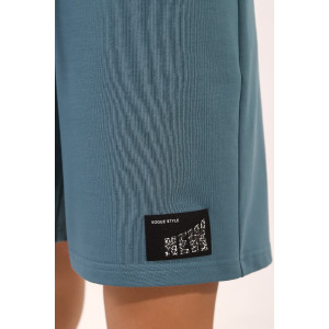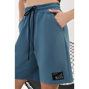 Представляем Вашему вниманию шорты молодежные из гладкокрашеного трикотажного полотна «футер двунитка» с лайкрой, средней длины, на притачном поясе с эластичной тесьмой внутри и шнурком, продетым через две петли в центре пояса, карманами в боковых швах. На левой передней половине шорт настрочен декоративный элемент.