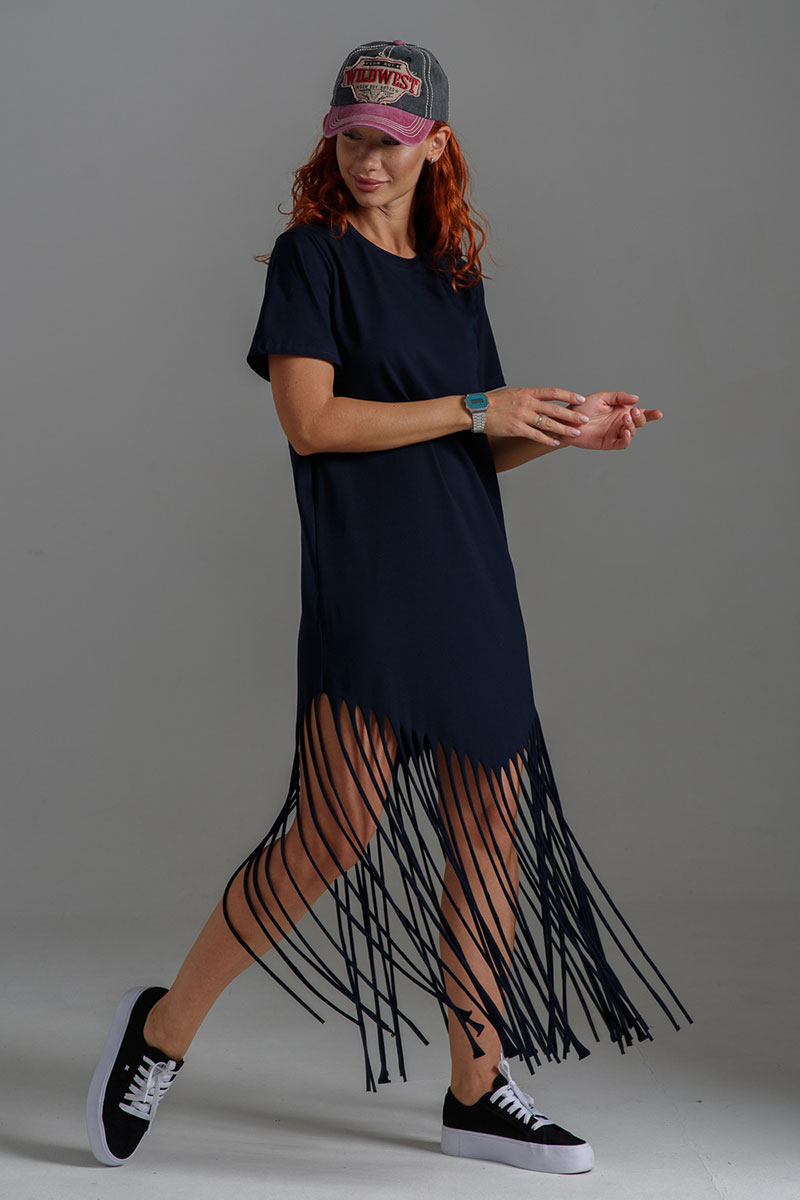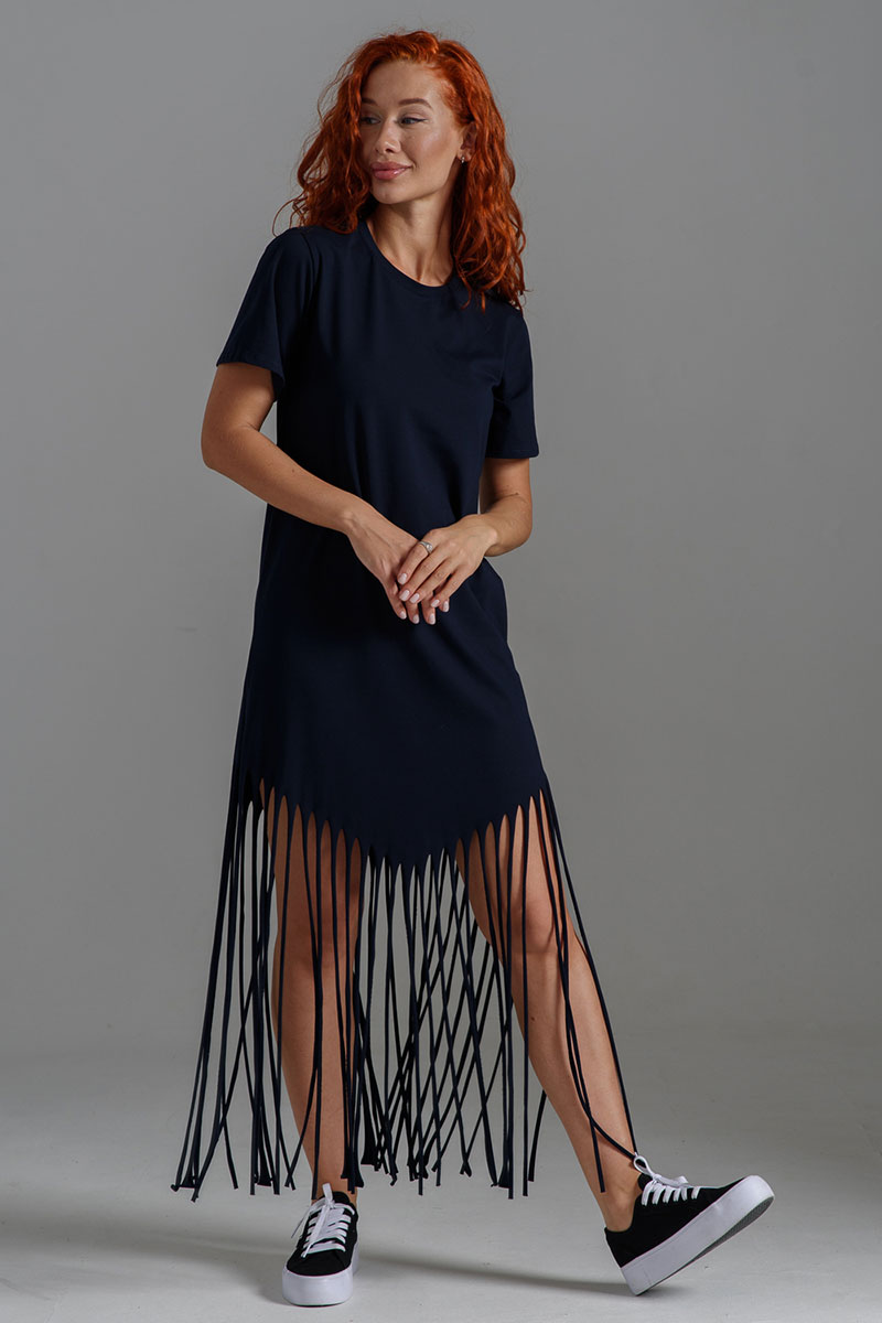 Платье женское №7477 кулирка с лайкрой (р-ры: 42-56) темно-синий