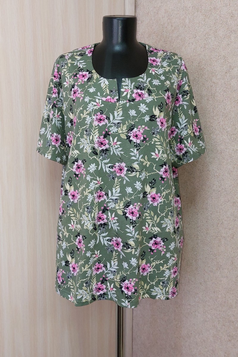 Туника женская ТК-398-ФУТ кулирка (последний размер) роза-плющ хаки 68
