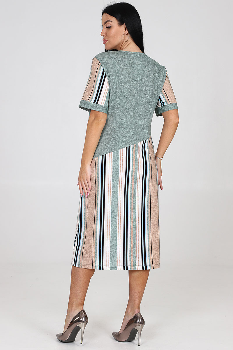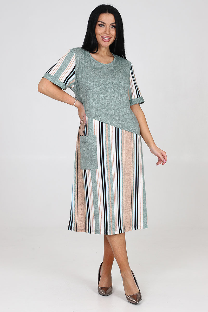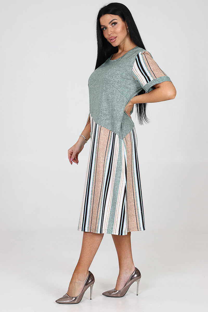 Платье женское "Каприз" ПлК-1544 кулирка (последний размер) зелено-бежево-белая полоса 56