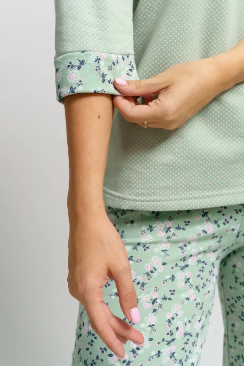 Пижама женская "Юля" 1326 кулирка (последний размер) зеленый горох 50,58
