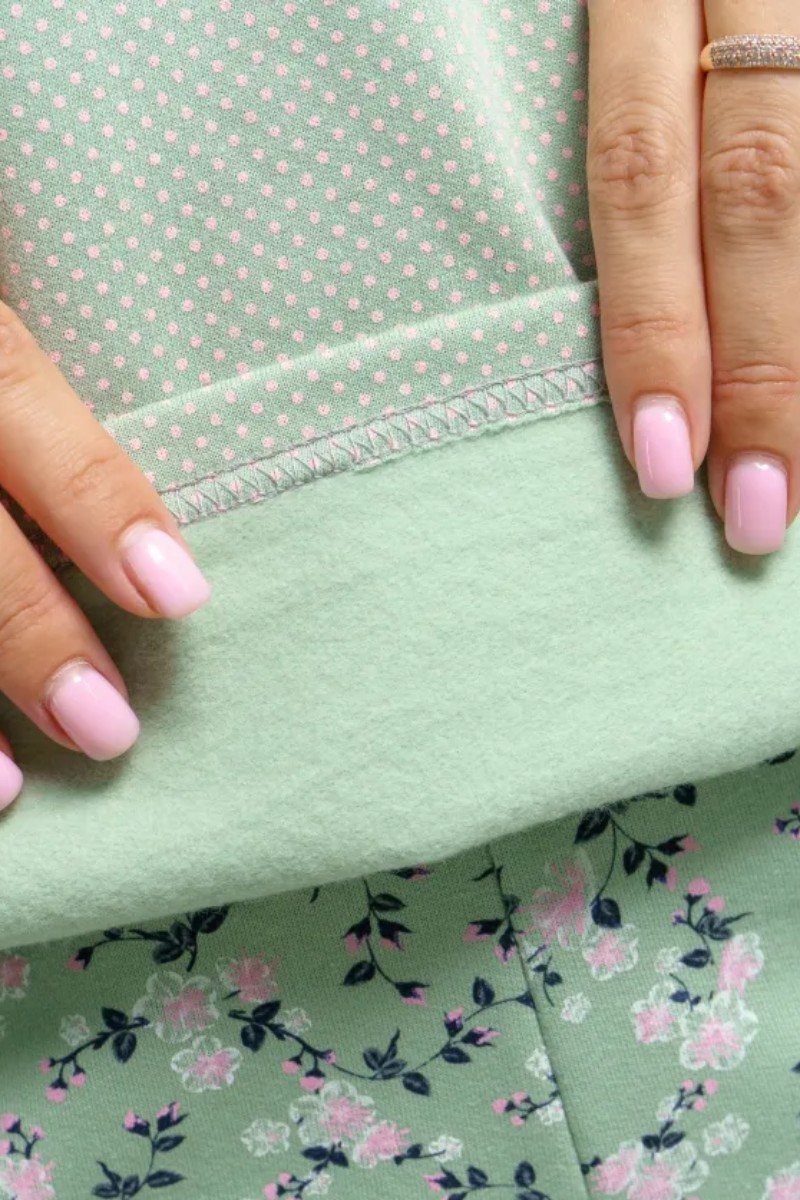 Представляем Вашему вниманию прекрасный домашний костюм, состоящий из свободной кофты с рукавом 3/4 и свободными прямого кроя брюками. Отделка тканью - компаньоном в тон брюк, брюки свободные на мягкой резинке.