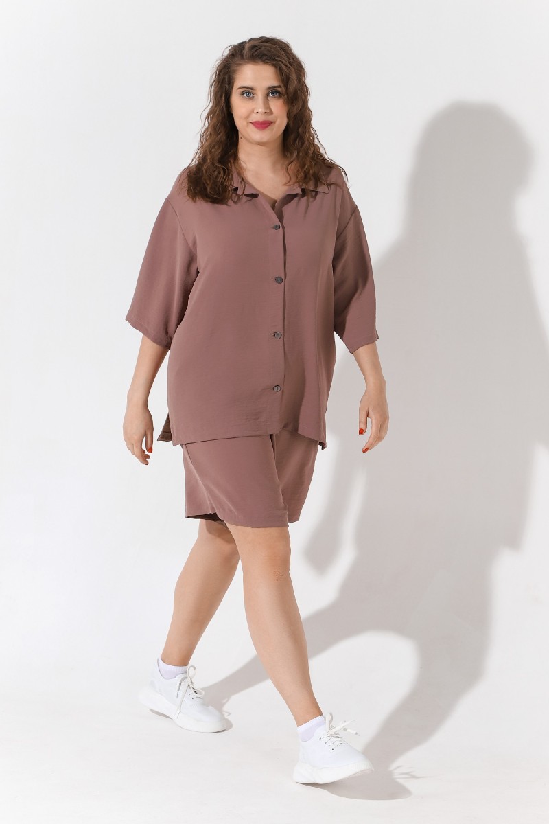 Шорты женские "Жаркий сезон-2" лён манго (р-ры: 46-56) кофейный