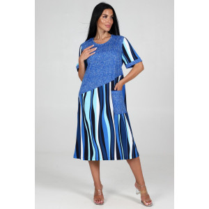 Платье женское "Каприз" ПлК-1544 кулирка (р-ры: 48-62) полоса-волна голуб.