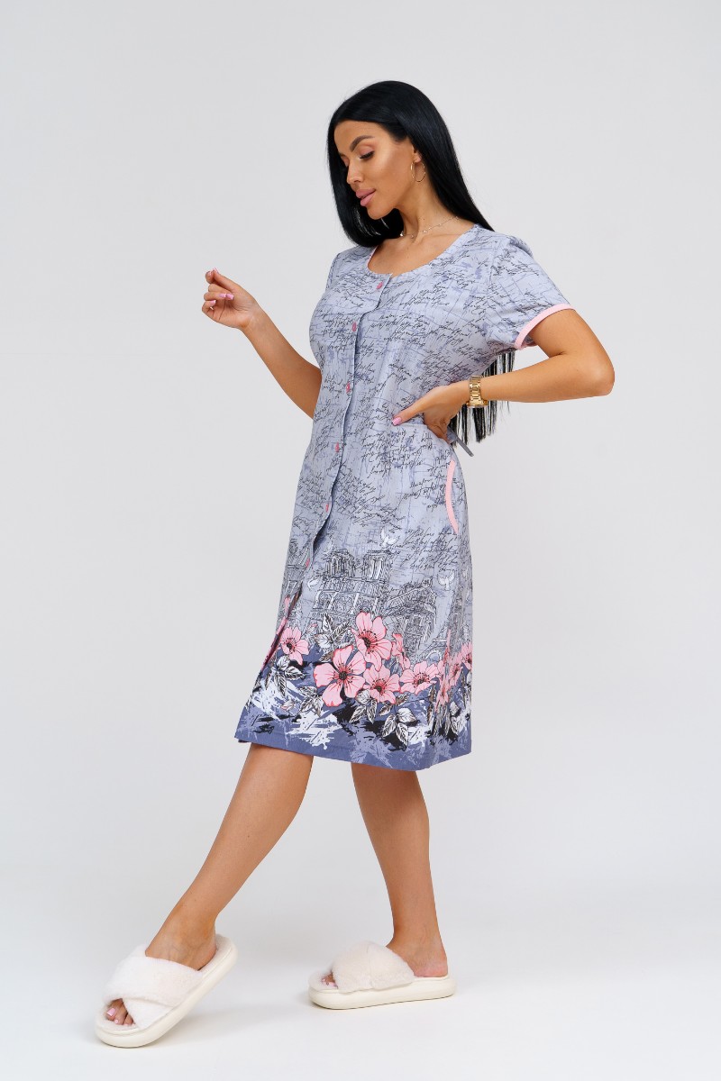 Представляем Вашему вниманию халат женский с коротким рукавом, застежка на петли и пуговицы. В боковых швах карманы, низ рукава и карманы окантованы.
