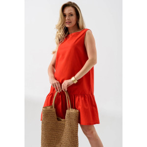 Представляем Вашему вниманию легкое женское платье без рукавов. Модель имеет яркую однотонную расцветку, которая красиво смотрится и поднимает настроение. Изделие хорошо сидит на фигуре и подчеркивает её достоинства. В нём Вы будете чувствовать себя комфортно и уверенно.