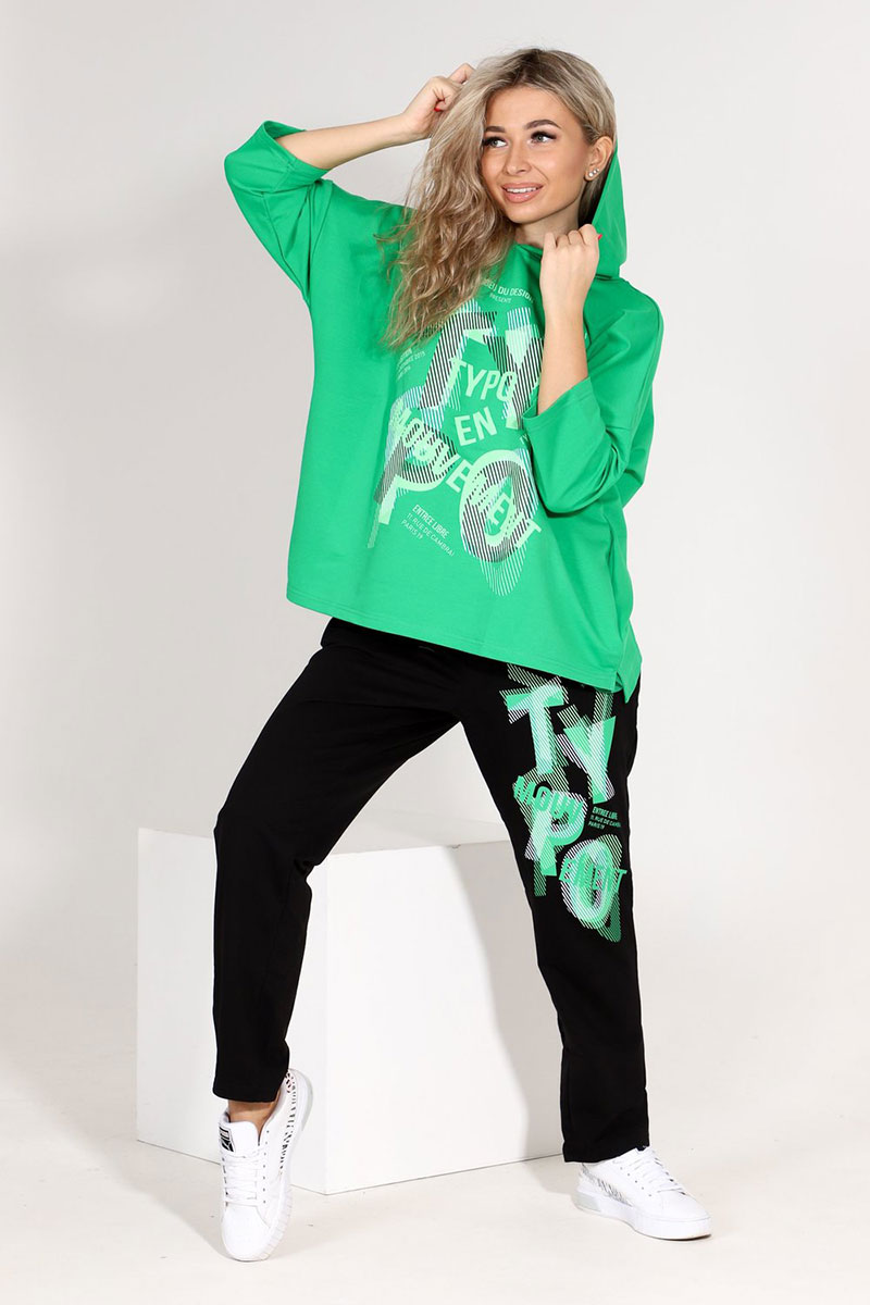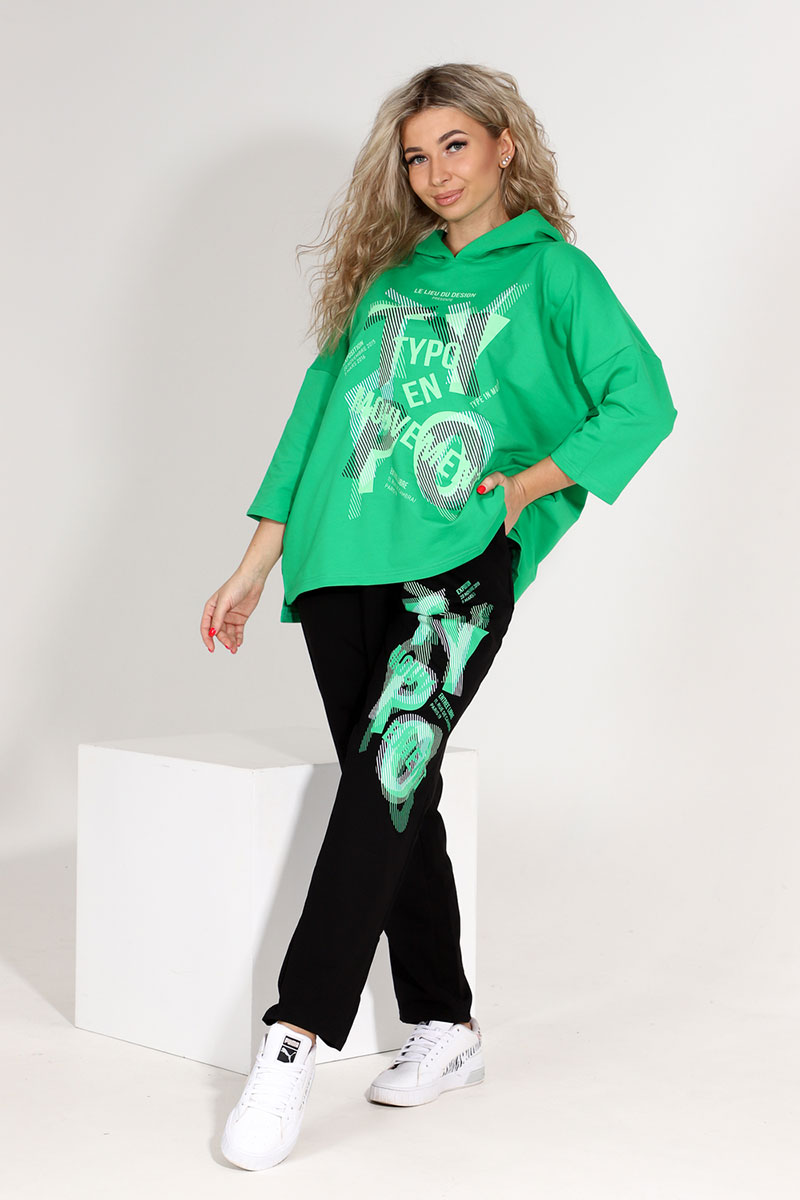 Костюм двойка женский №46536 футер с лайкрой 2-х нитка (последний размер) ярко-зеленый 52