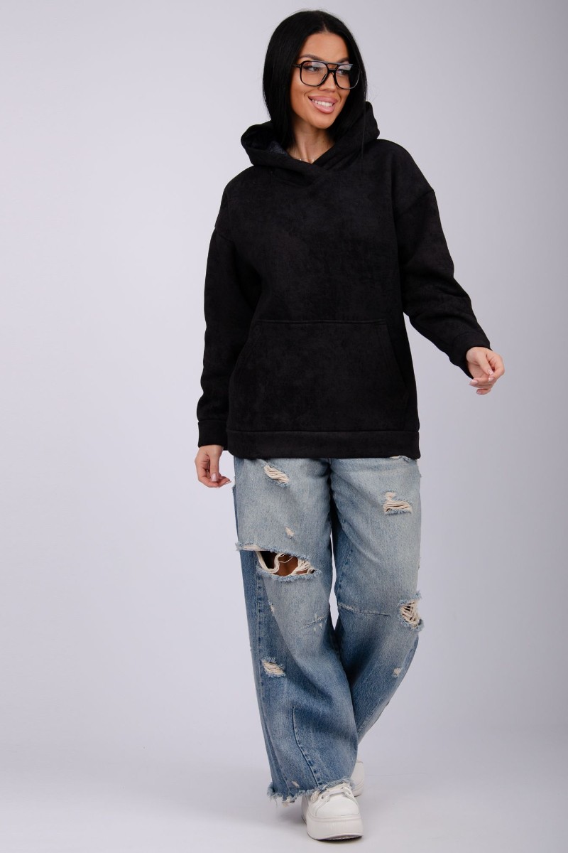 Худи женское "Сальма 2" футер 3-х нитка с начесом (р-ры: 42-60) черный