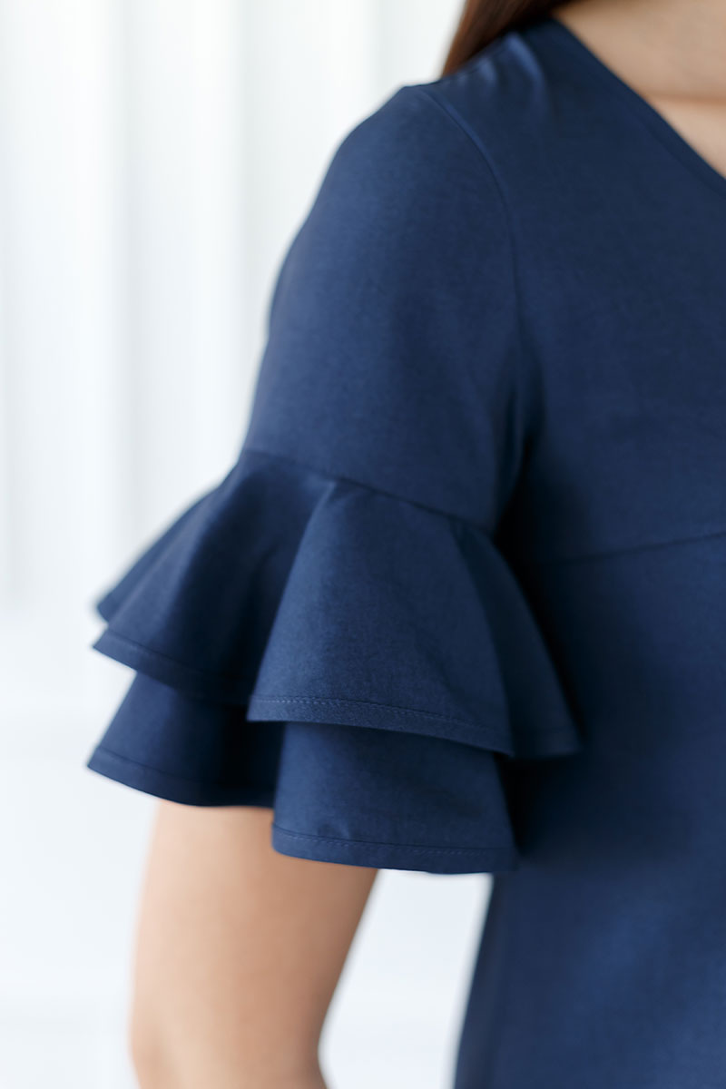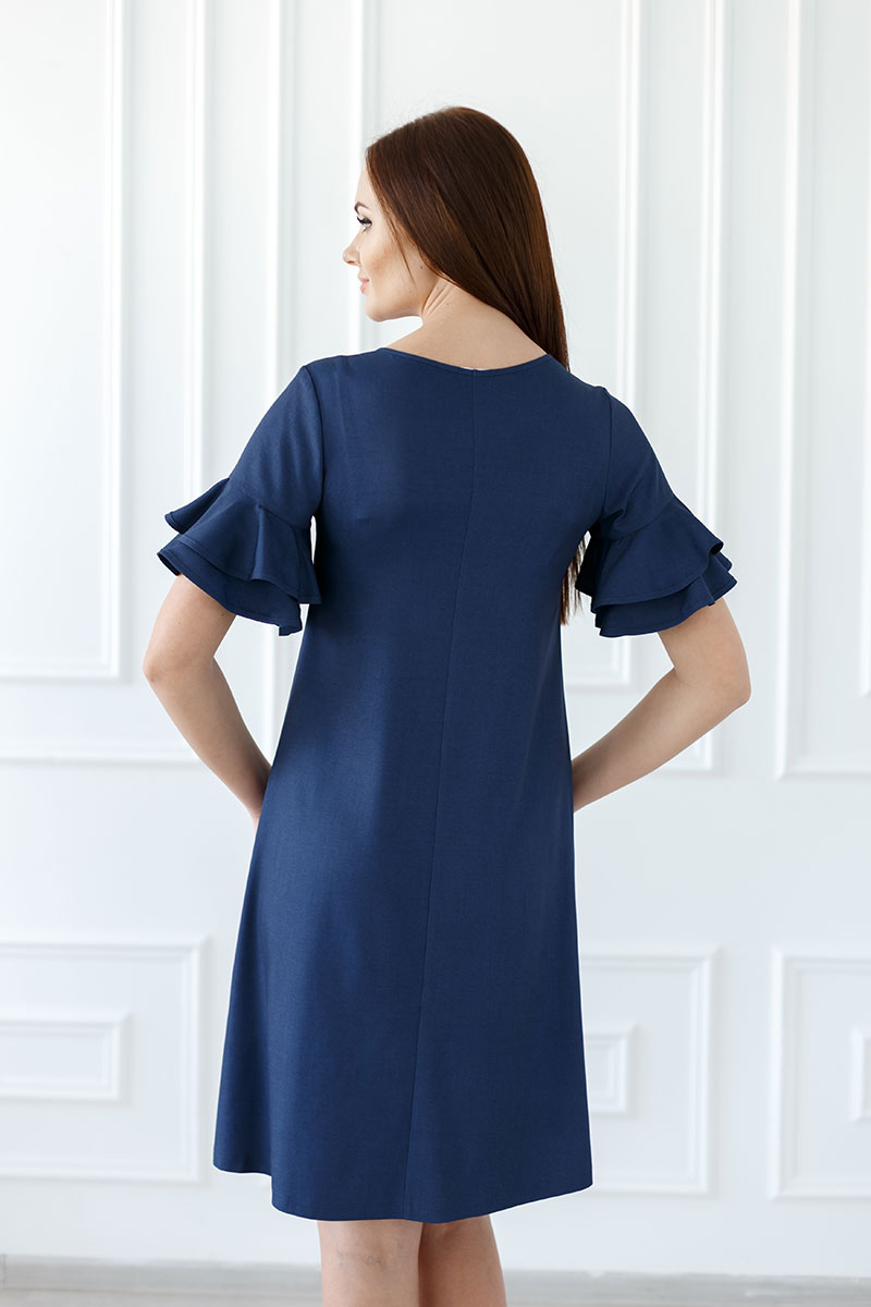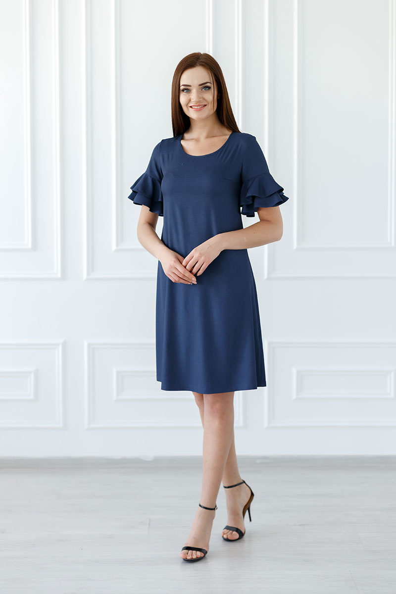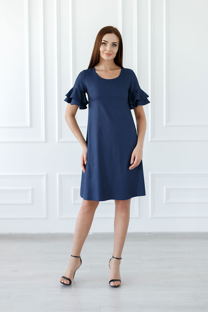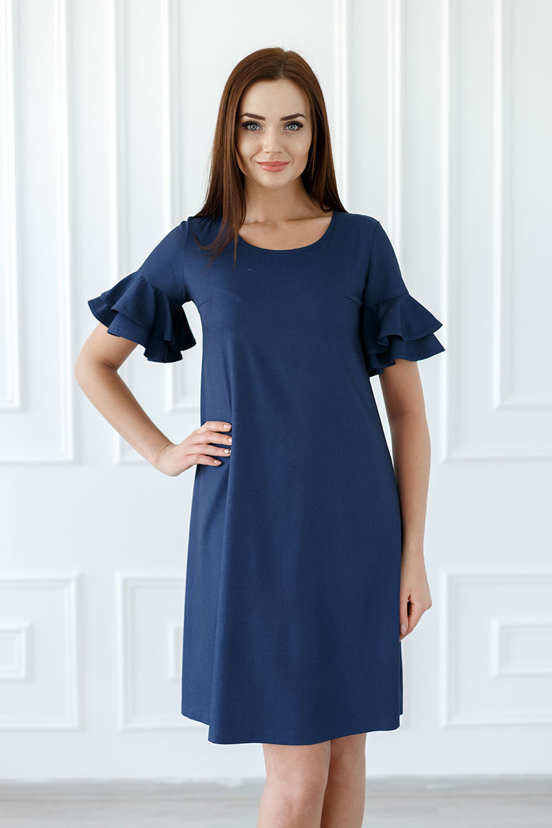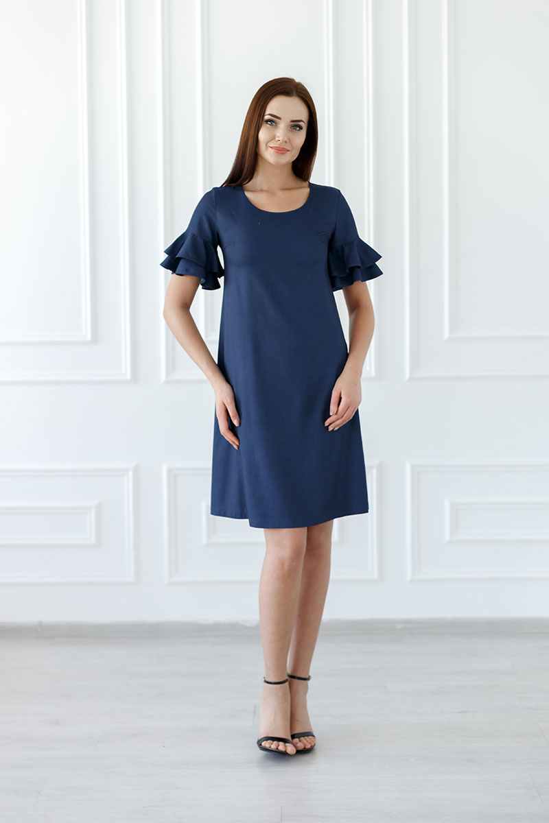 Представляем Вашему вниманию стильное женское платье, изготовленное из качественного материала, который сохраняет свои свойства спустя множество стирок. Платье длиною до колена, с оригинальными рукавами, изысканно и элегантно смотрится. В этом платье в любой ситуации Вы будете чувствовать себя комфортно и уверенно.