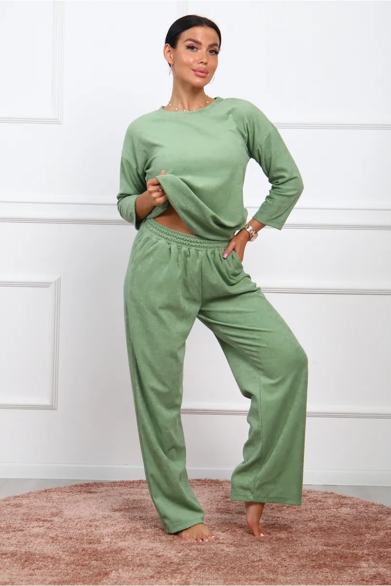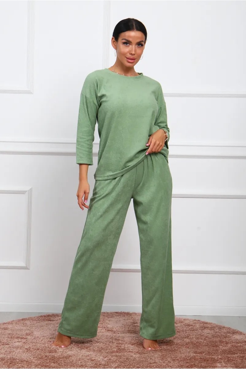 Представляем Вашему вниманию женский костюм, который идеально подойдет для теплых весенних и летних дней. Обладает теплотой, что делает его подходящим вариантом в период весны и лета. Комплект с рукавом 3/4, отлично подойдет для домашних посиделок. Одежда базовая и однотонная, что позволяет легко комбинировать с другими элементами гардероба. Махровый материал создает невероятно мягкое ощущение, обеспечивая комфорт в течение всего дня. Этот теплый трикотаж отлично удерживает тепло, поэтому вы всегда будете чувствовать себя уютно даже в самые холодные дни. Брючный вариант расширенного кроя оверсайз обеспечивает свободу движений и подходит для женщин больших размеров. Этот модный комплект выполнен из махры великолепного качества, что делает его незаменимой частью любого гардероба и для посиделок дома. Он разработан специально для тех женщин и девушек, которые предпочитают стиль. Мягкий текстиль не только приятно носить на теле, но он также прост в уходе. Домашняя одежда поддерживает молодежный стиль благодаря современному дизайну и продуманным деталям. Костюм подходит для офисной работы в неформальной обстановке. Наш махровый костюм идеально подходит для больницы: он обеспечивает максимальный комфорт и тепло в прохладных помещениях. Двойка легко адаптируется к любому случаю благодаря своей универсальности. Особое внимание уделено адаптации одежды для беременных женщин — фасоны тщательно подобраны, чтобы обеспечить максимальный комфорт в беременность. Широкие штаны типа палаццо создают дополнительное пространство, чтобы каждая будущая мама могла чувствовать себя полностью расслаблено. Благодаря своему демисезонному характеру он является практичным вариантом для прохладного сезона года.