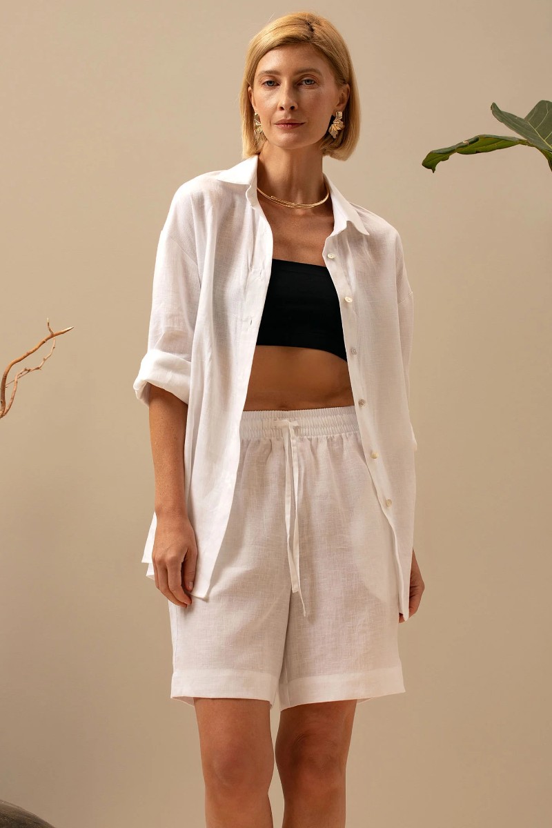 Представляем Вашему вниманию льняные женские шорты - классический вариант летнего гардероба. Короткие шорты оверсайз свободного кроя обеспечат стильный и современный образ на морском отдыхе или во время летних прогулок и пикников. Лён создает эффект легкости и обеспечивает комфорт и свободу движений.