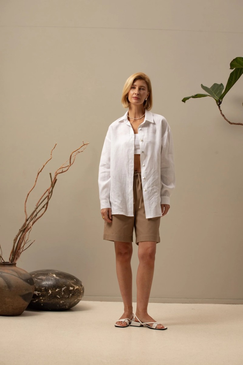Рубашка женская "Лён" М-3РЖ-5 лён (р-ры: 42-52) белый