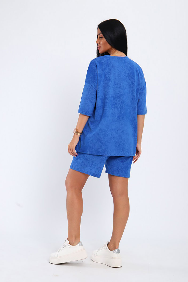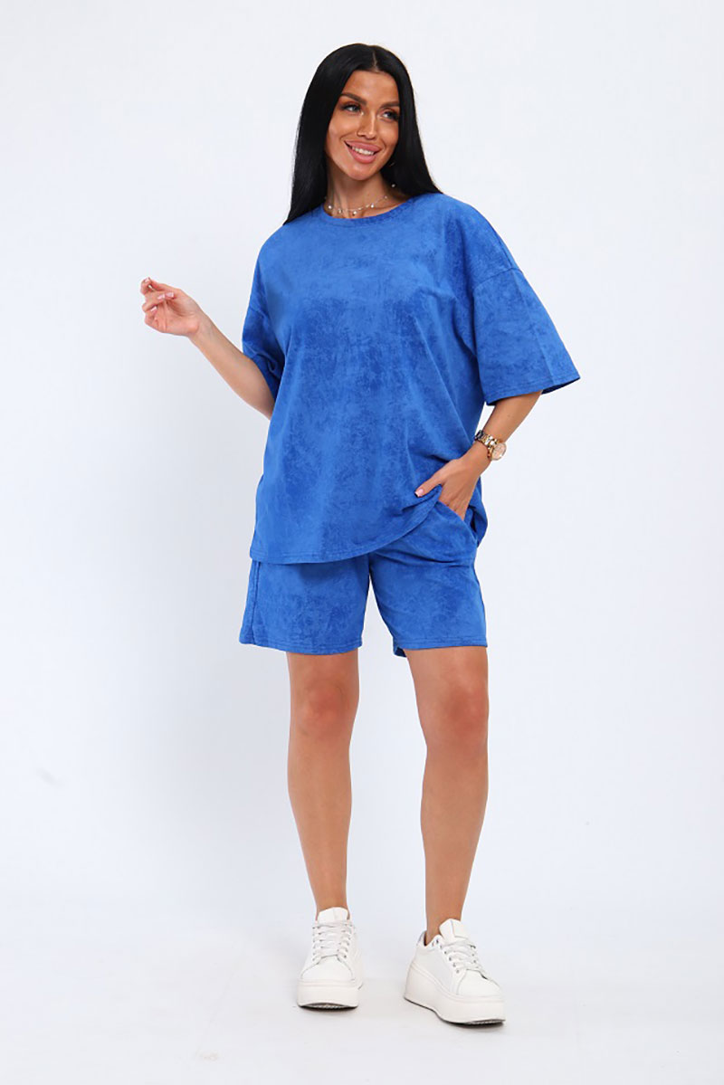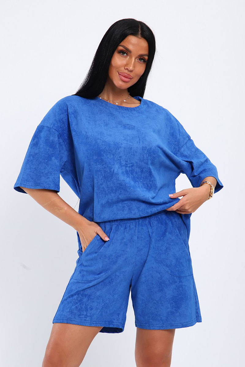 Представляем Вашему вниманию женский костюм двойку, состоящий из футболки и шорт. Модель выполнена из мягкого, натурального материала, который не вызывает аллергических реакций на коже и хорошо пропускает воздух, позволяя коже дышать.