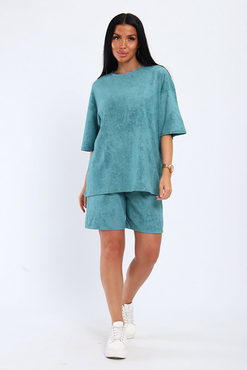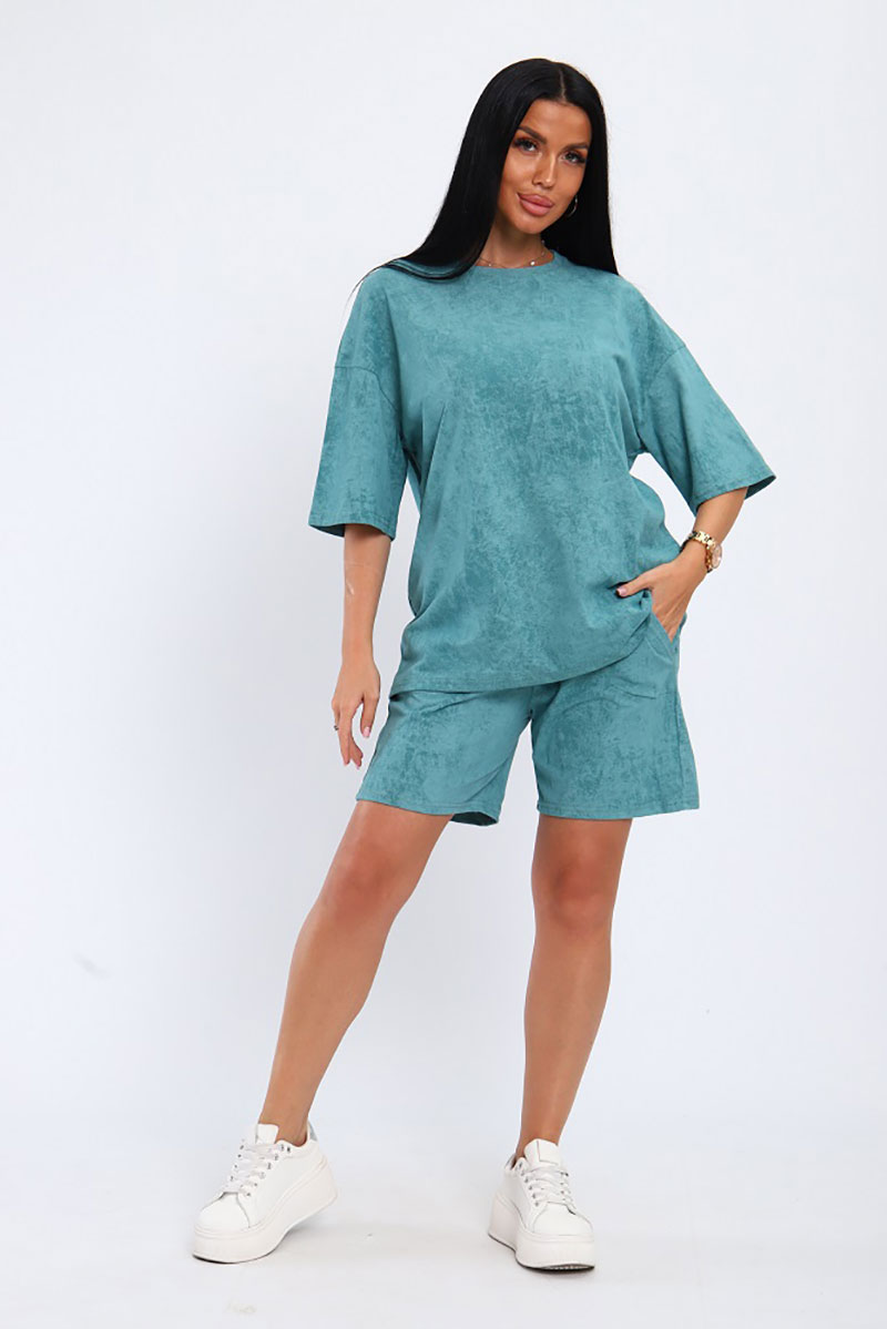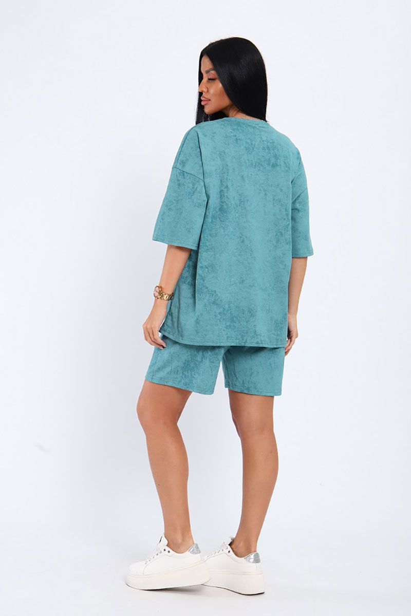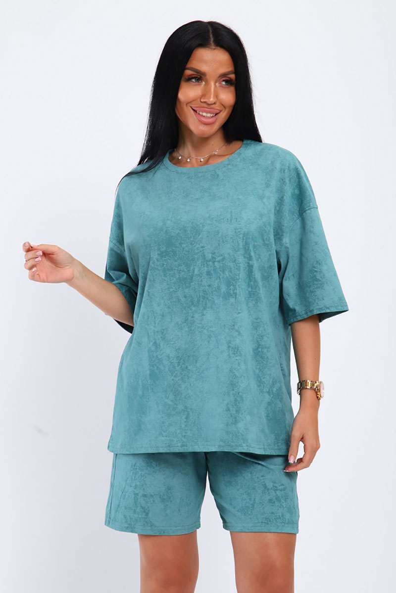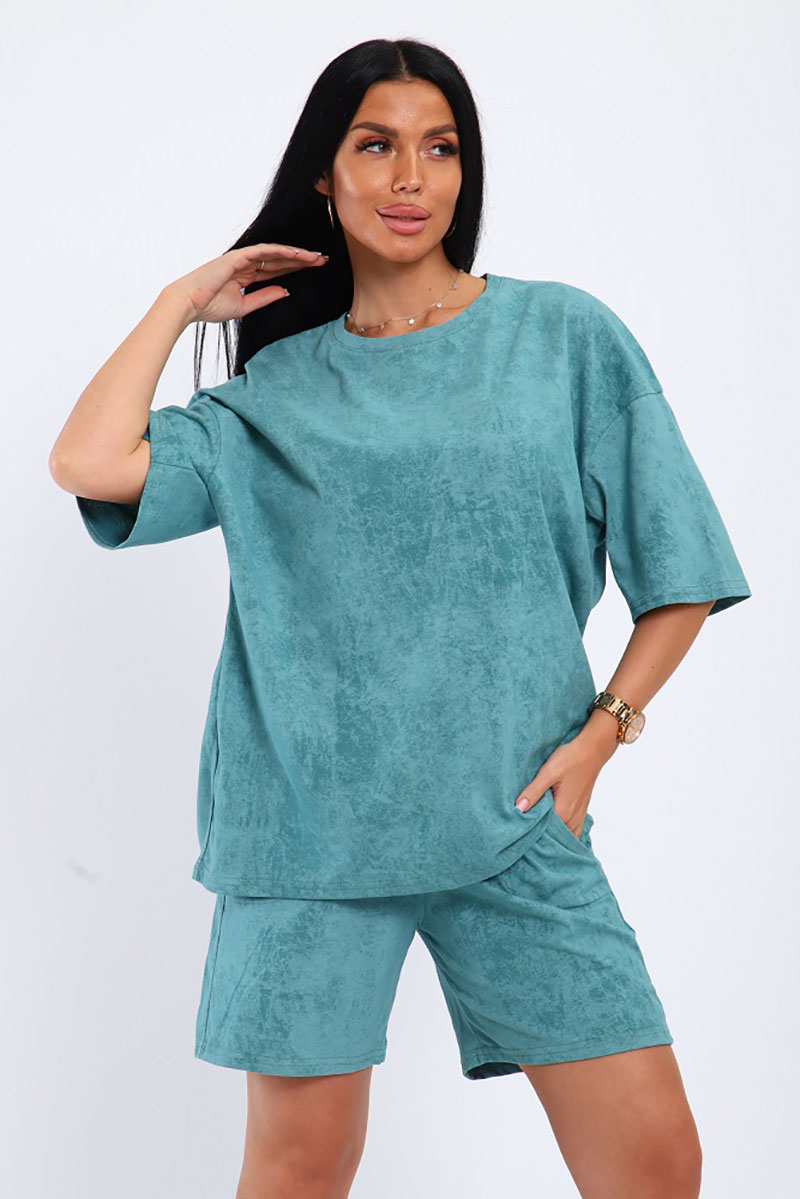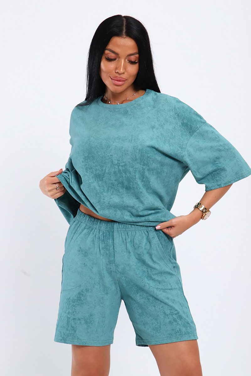 Представляем Вашему вниманию женский костюм двойку, состоящий из футболки и шорт. Модель выполнена из мягкого, натурального материала, который не вызывает аллергических реакций на коже и хорошо пропускает воздух, позволяя коже дышать.