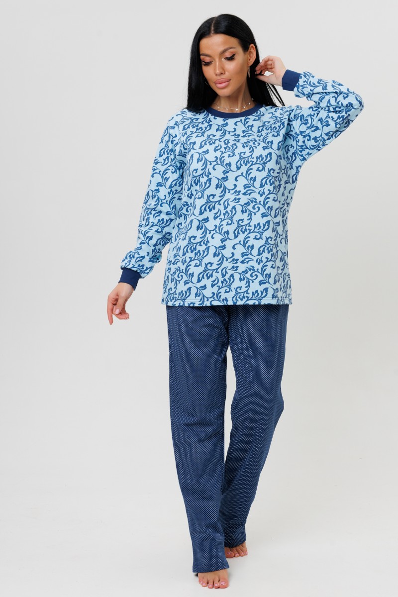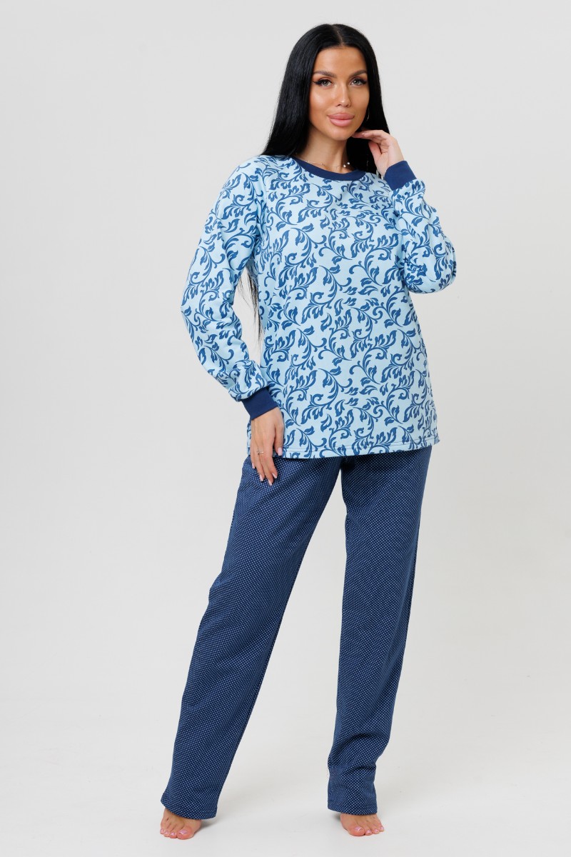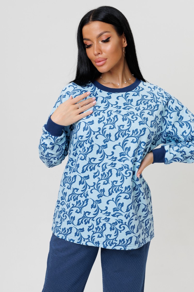 Представляем Вашему вниманию костюм домашний из футера с начесом, который состоит из лонгслива и брюк. Лонгслив имеет манжеты на рукавах и отделку по горловине. Брюки прямые на резинке.